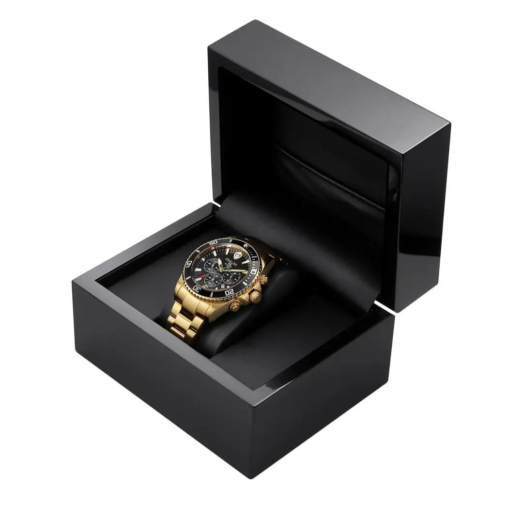 Powered by a Japanese quartz movement, the Singh Gold offers chronograph and date functions, super-luminous hands, and 100 m water resistance — blending strength, precision, and heritage.